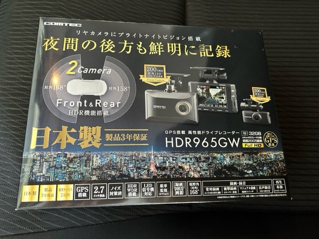 コムテックの前後2カメラドラレコ