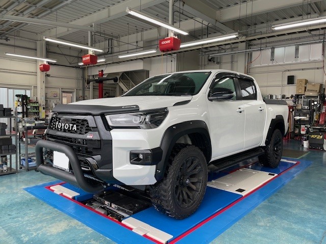 お車は「HILUX GR SPORT」でして、すでにJAOSのリフトアップコイルがフロントに装着されておりました。