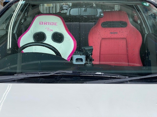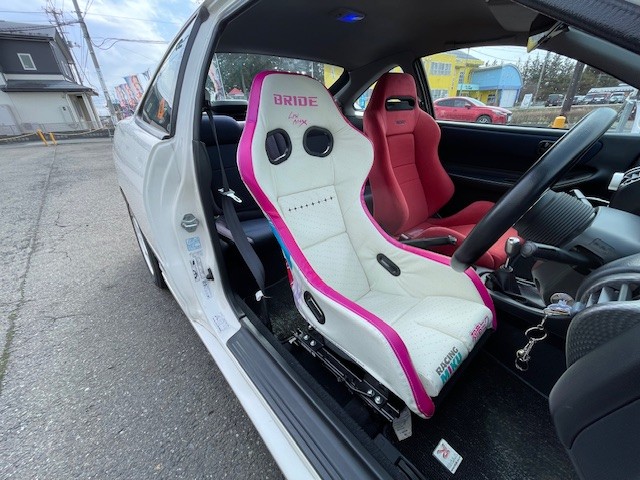そんな中、白ベースに桜?梅?色が目引くBRIDEのシートを装着させていただきましたのでご紹介いたします。