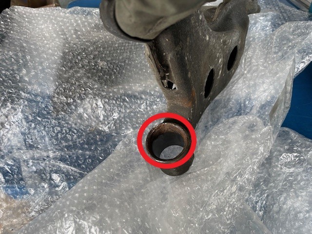 マルハモータースさんに到着後、もともとついているブッシュをさくさく外し