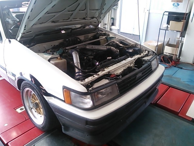 オイル交換のご依頼をいただきました。その中の一台、昭和のハチロク「カローラレビン」