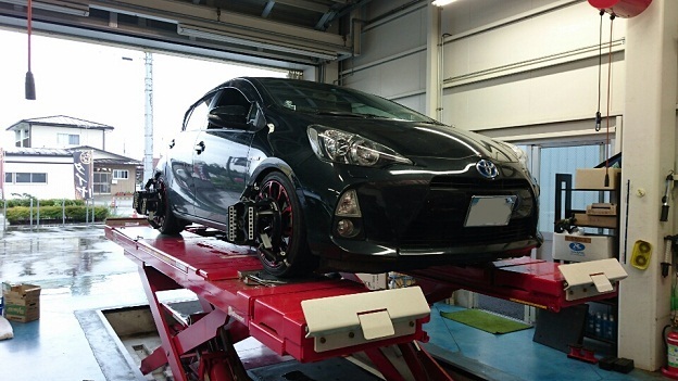 2015年9月8日 ツイート アクアがアライメント調整で入庫です。こちらのアクア、昨年車高調を取り付けておりタイヤ交換を行なったということでの作業です。ハンドルセンターのズレも生じておりましたのでしっかり調整させていただきました。光軸調整も行ないましたので(外注ですが)快適な運転ができますね。ご利用、ありがとうございました。 Prev Next