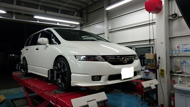 2015年12月16日 ツイート 車高調から純正ショックへの戻しとアライメント調整でオデッセイが入庫されました。ショックは純正ですがサスペンションがテインのS-テクですので純正車高よりは下がっております。戻す前は写真よりもかなり下がっており、乗り心地が悪いということで戻すことになりました。ご利用、ありがとうございます。 Prev Next