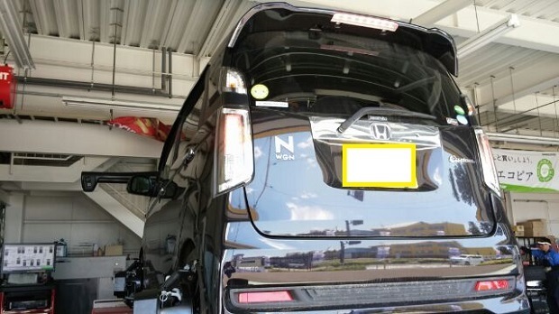 写真のN-WGNカスタムは、新品タイヤとレオニスLVをご購入いただいたお客様です。