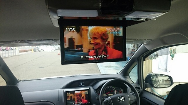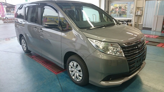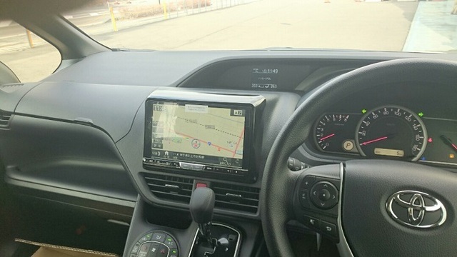 納車前のノアがナビなどの取付で入庫いたしました。