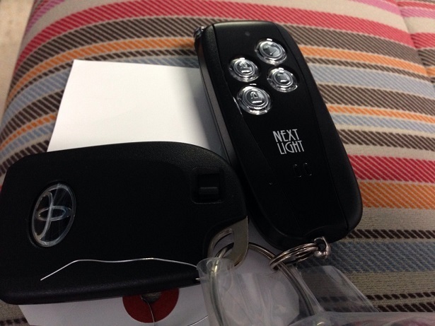 ポルテに取り付けたエンジンスターターは、キーを車内にいれなくていいサーキットデザイン。