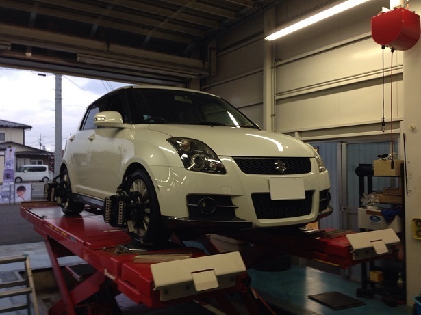 スイフトスポーツは先日タイヤをご購入いただいてからのアライメント調整になります。
