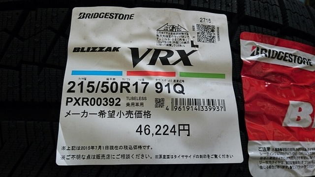 スタッドレスタイヤはやはり効きがいいブリザックVRXです。