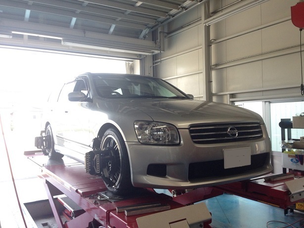 ステージアとハイエースがアライメント調整で入庫されました。