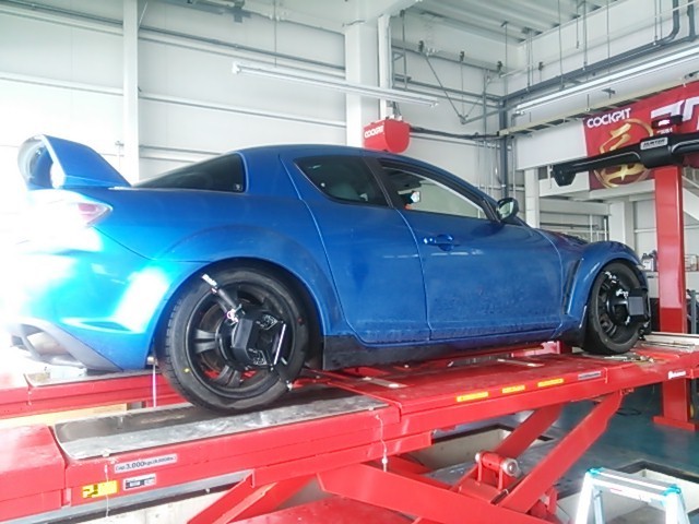RX-8が車高調取付、アライメント調整で入庫されました。