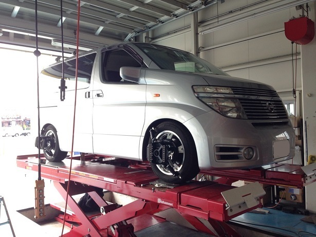 エルグランドはリアの偏芯カムを交換してからのアライメント調整。
