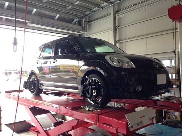 ベリーサはロアアームを交換されたとのことでアライメント調整。