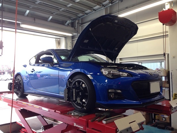 BRZは車高調に替えられたとのことでアライメント調整。