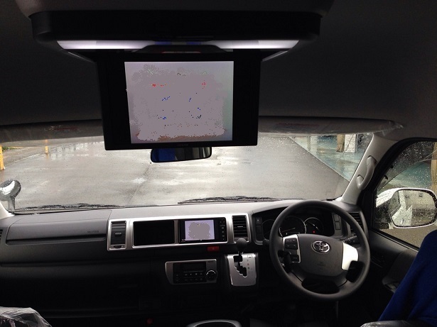 納車前のハイエース グランドキャビンがナビ、モニター、バックカメラの取り付けで