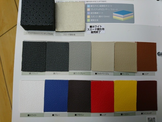 サンプル生地やスポンジが貼り付けられた