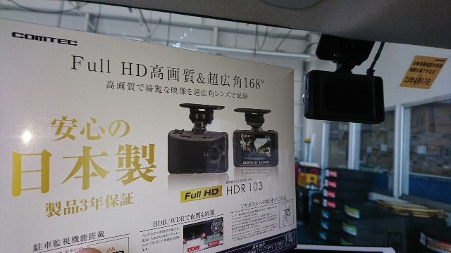 在庫していた「コムテックHDR103」もお取り付け。