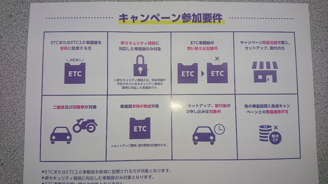 当店で新規にETC、ETC2.0ご購入の際は