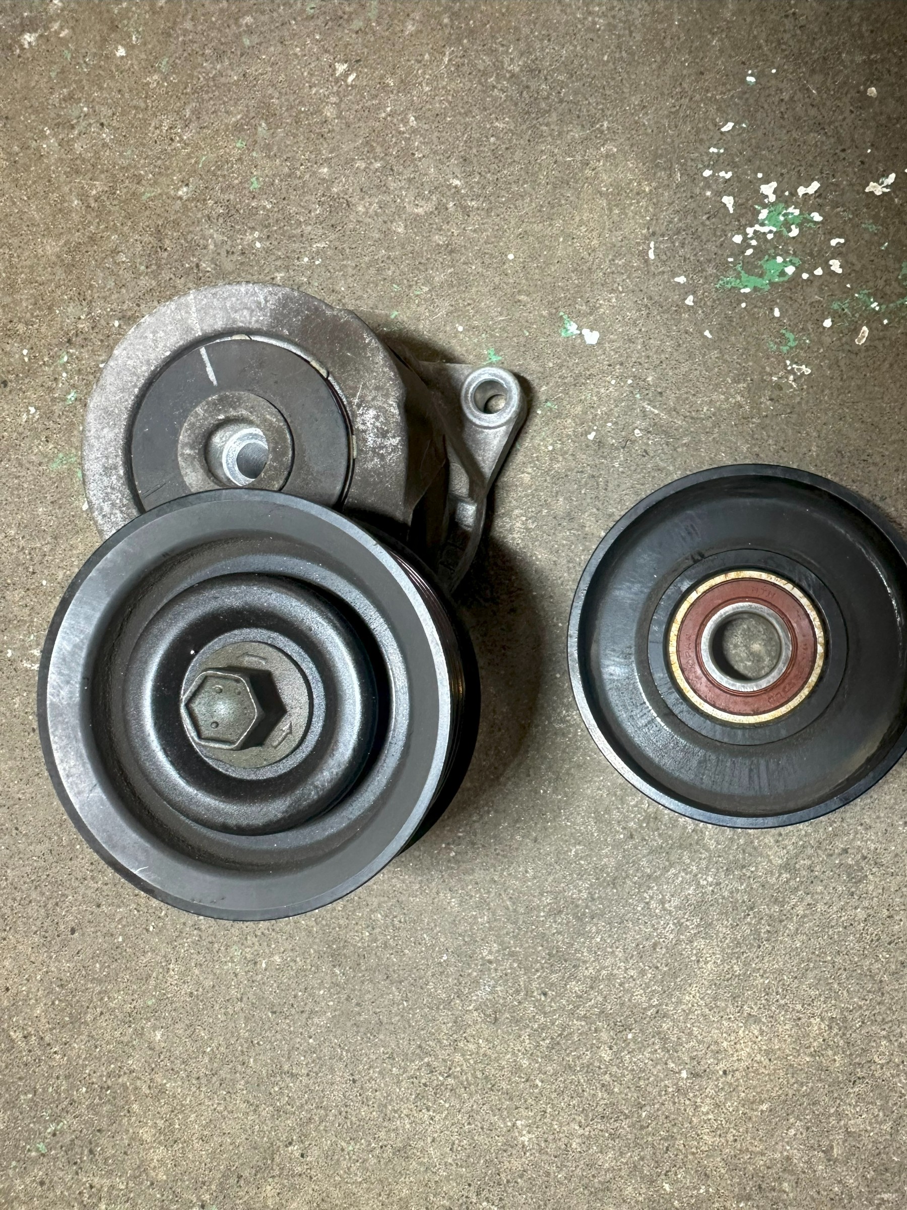 左がオートテンショナーといわれる部品。