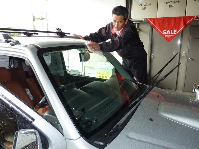 フロントガラスの撥水コーティングを無料で行っており、ご依頼頂きました。