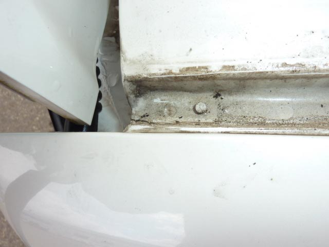 特にひどいのが、左右のルーフモール後部のパテが割れていて結構な量が