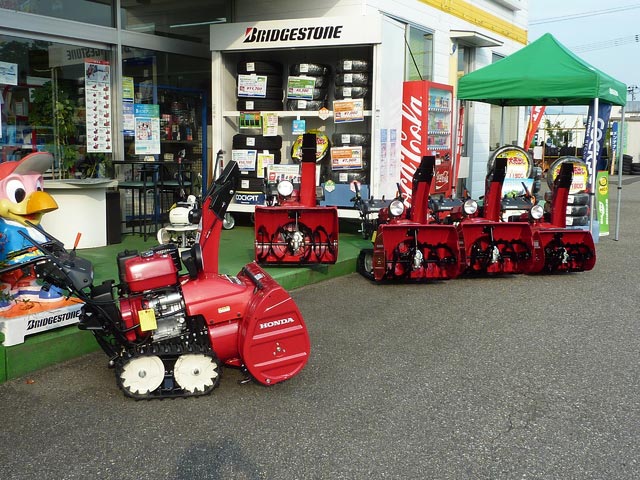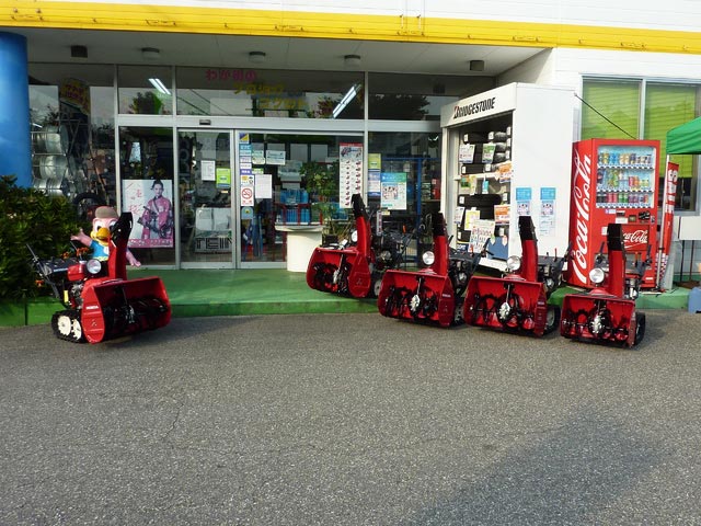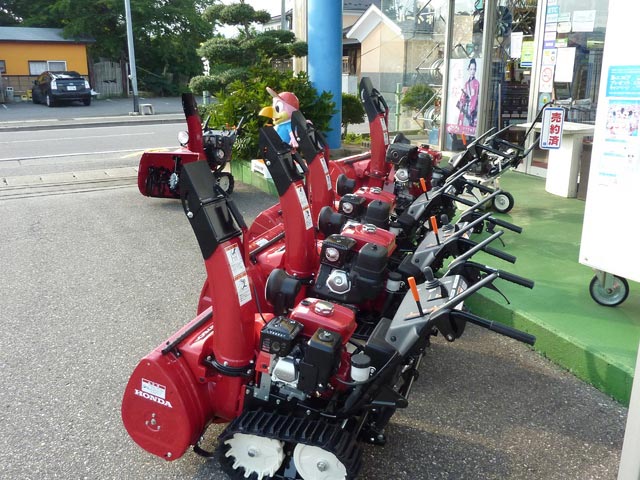 2013年8月8日 ツイート 新品除雪機が入荷しました(先行ご予約頂いた分)。取りあえず並べてみました(笑)やっと梅雨開けしたばかりとお思いでしょうが、メーカーさんの予約締切が早い段階で終了なので、生産ラインから上がれば随時納品されてきます。機種.台数は限られてしまいますが、まだ間に合う物も御座いますのでお早めにご相談下さい。しかし、うちは何屋さんナンでしょうか(汗) Prev Next