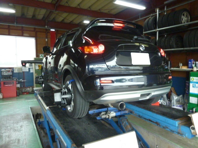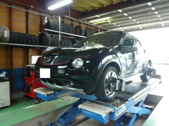 前回ご来店の際に、ディーラー様でサイドスリップは点検するけど、アライメント調整はした方が良いのかとご相談頂いたので、サイドスリップとアライメント調整の違いをご説明し、更に走行距離が100,000kmオーバーで1度もアライメント調整をした事がないとの事だったので、お勧めさせて頂きました。