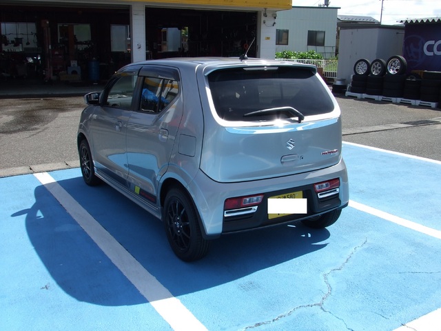 新規のお客様で先月納車されたばかりの、走行距離700kmのビカビカ新車HA36Sアルトワークス4WDで、車高調キット取り付けにご来店頂きました。