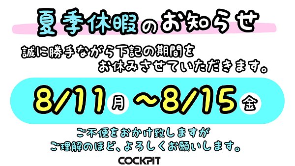 【夏季休暇のお知らせ】