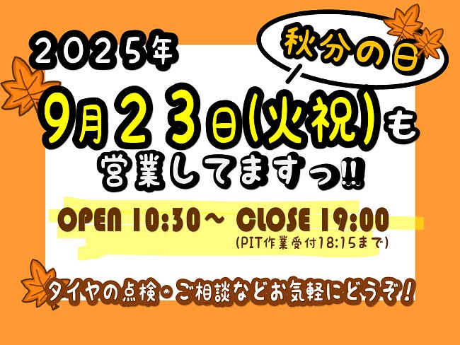 2025年9月23日(火祝)営業してます(*^-^*)