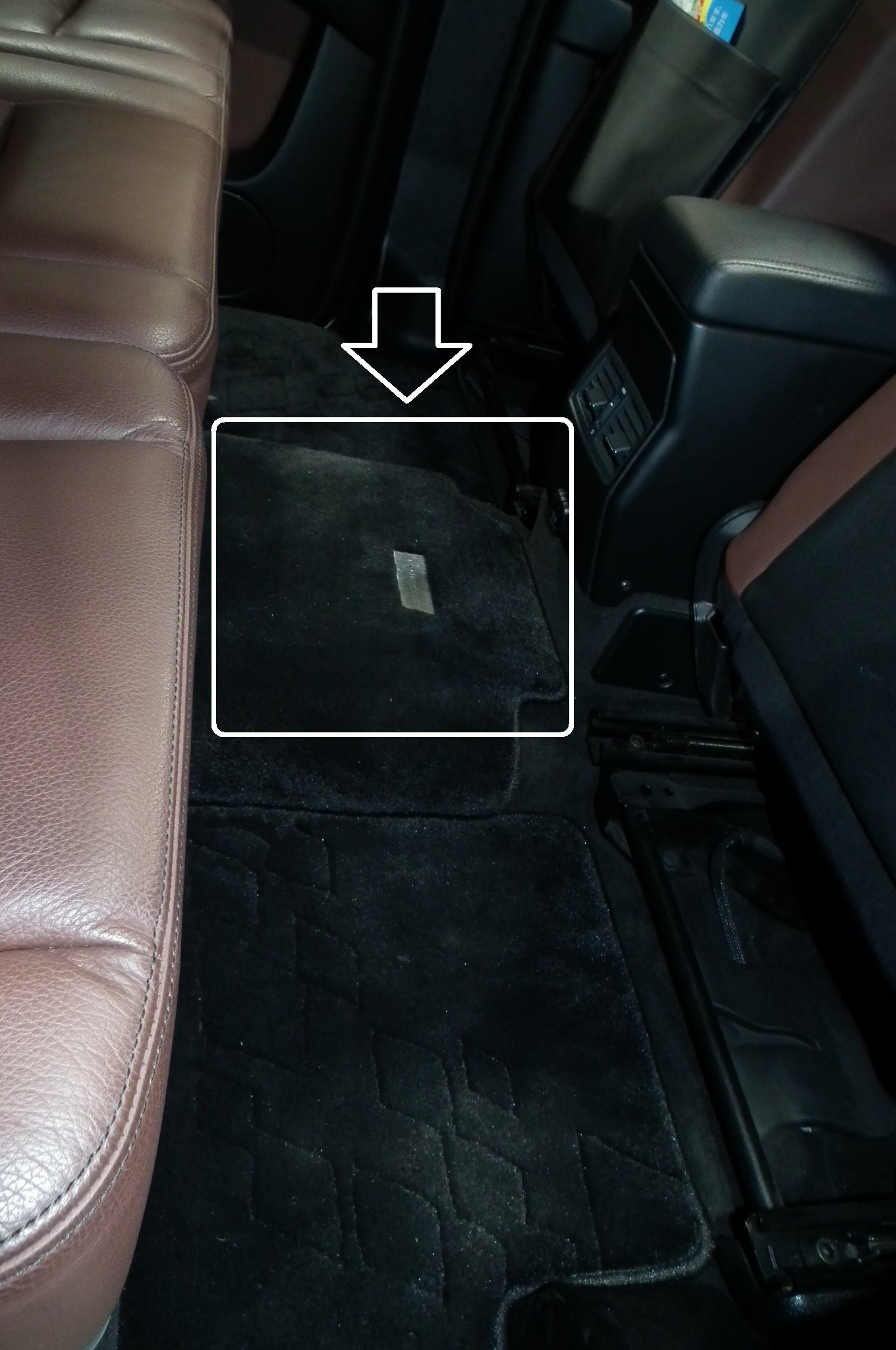 後部座先足元の真ん中にあります。