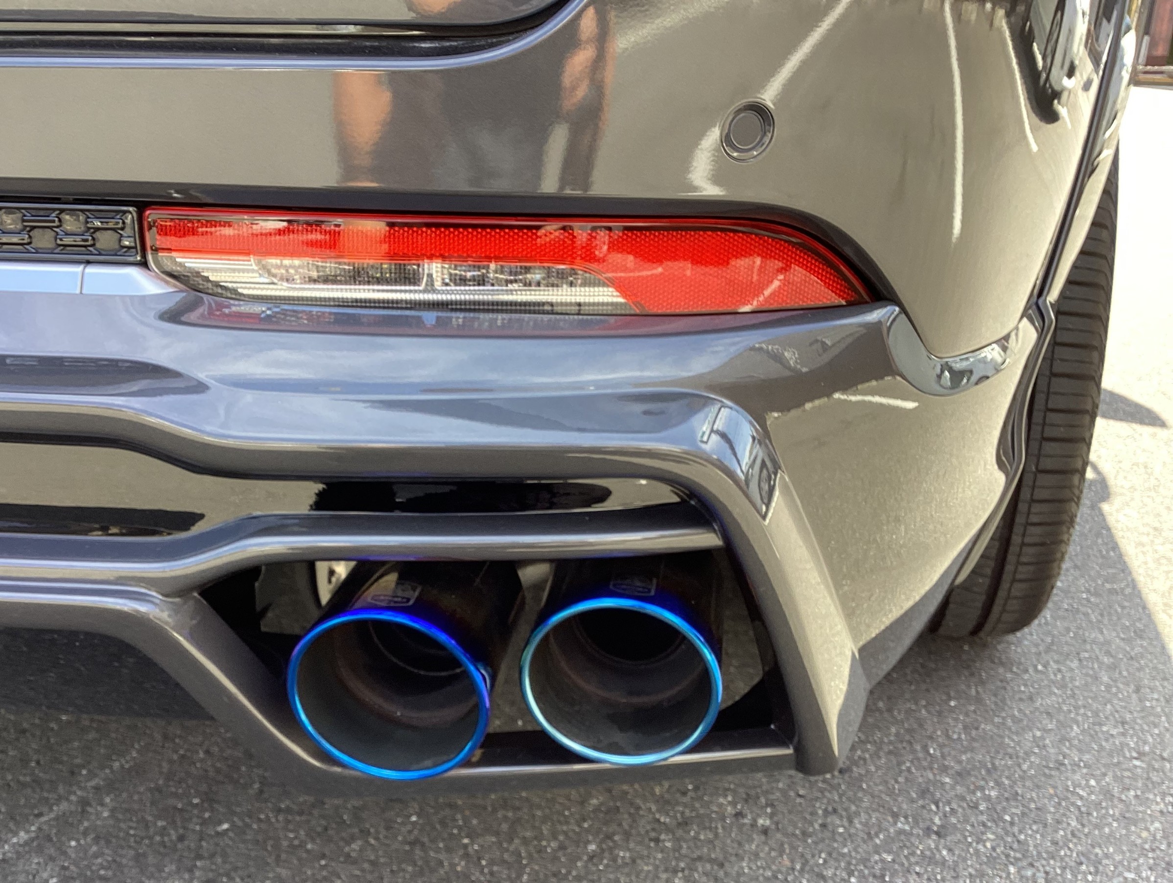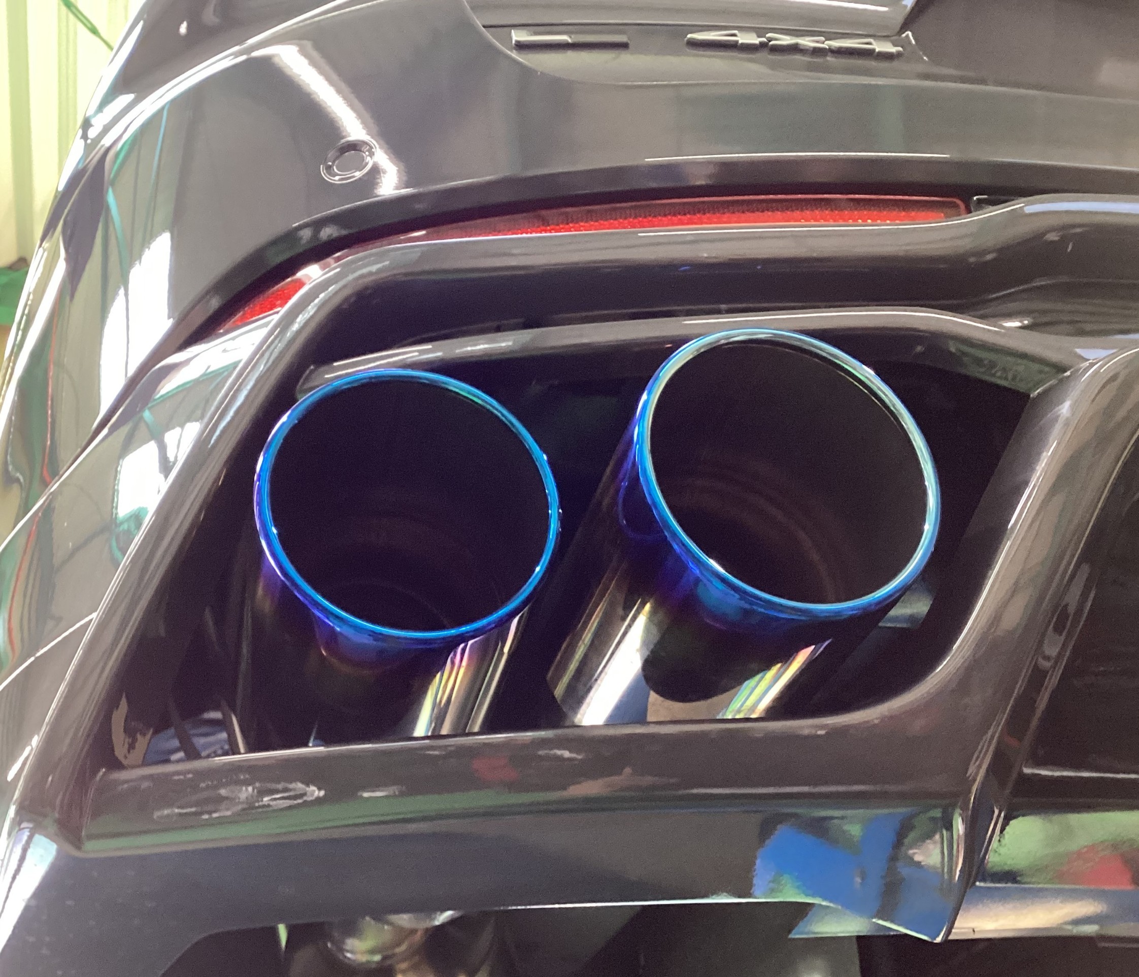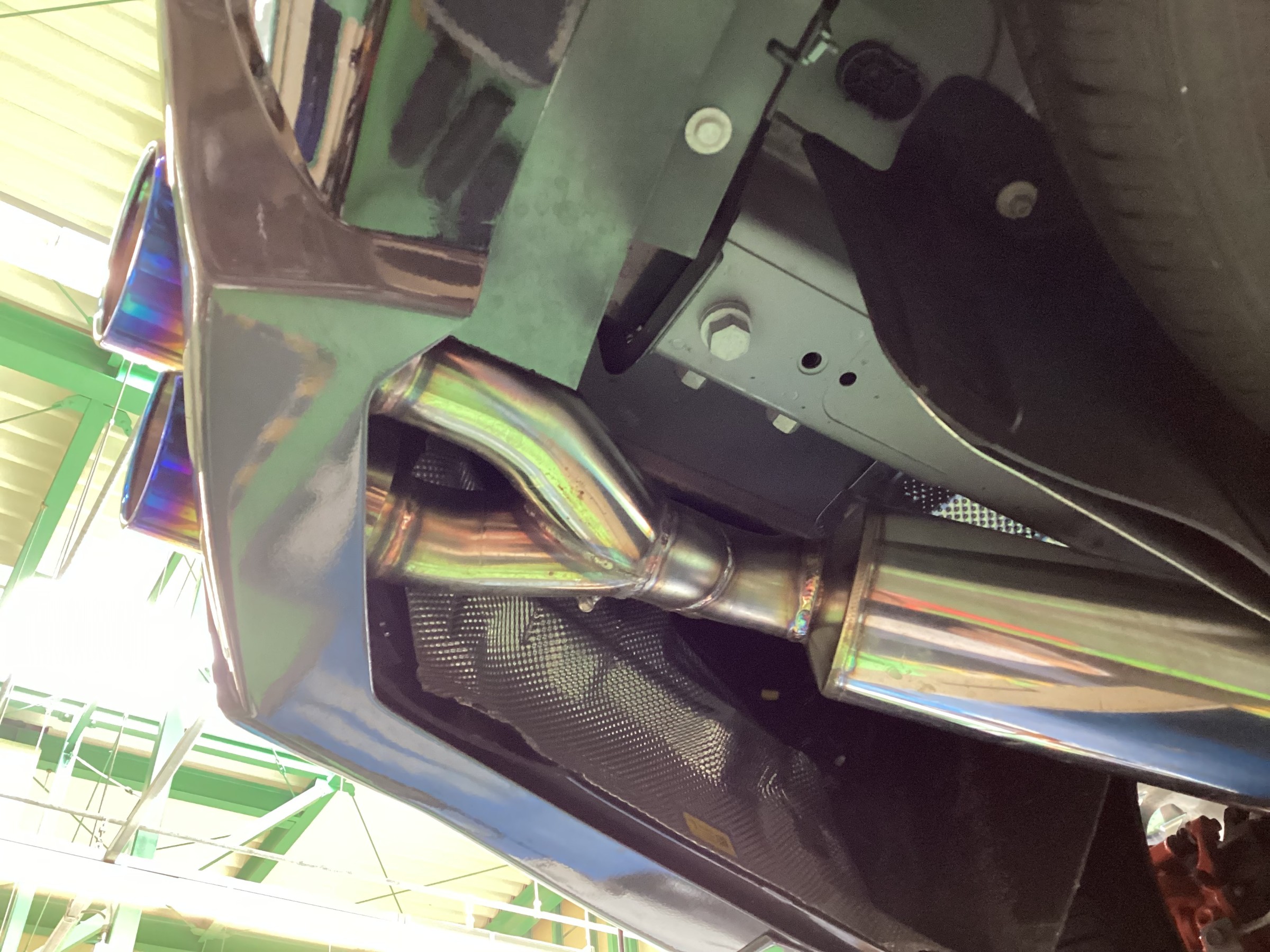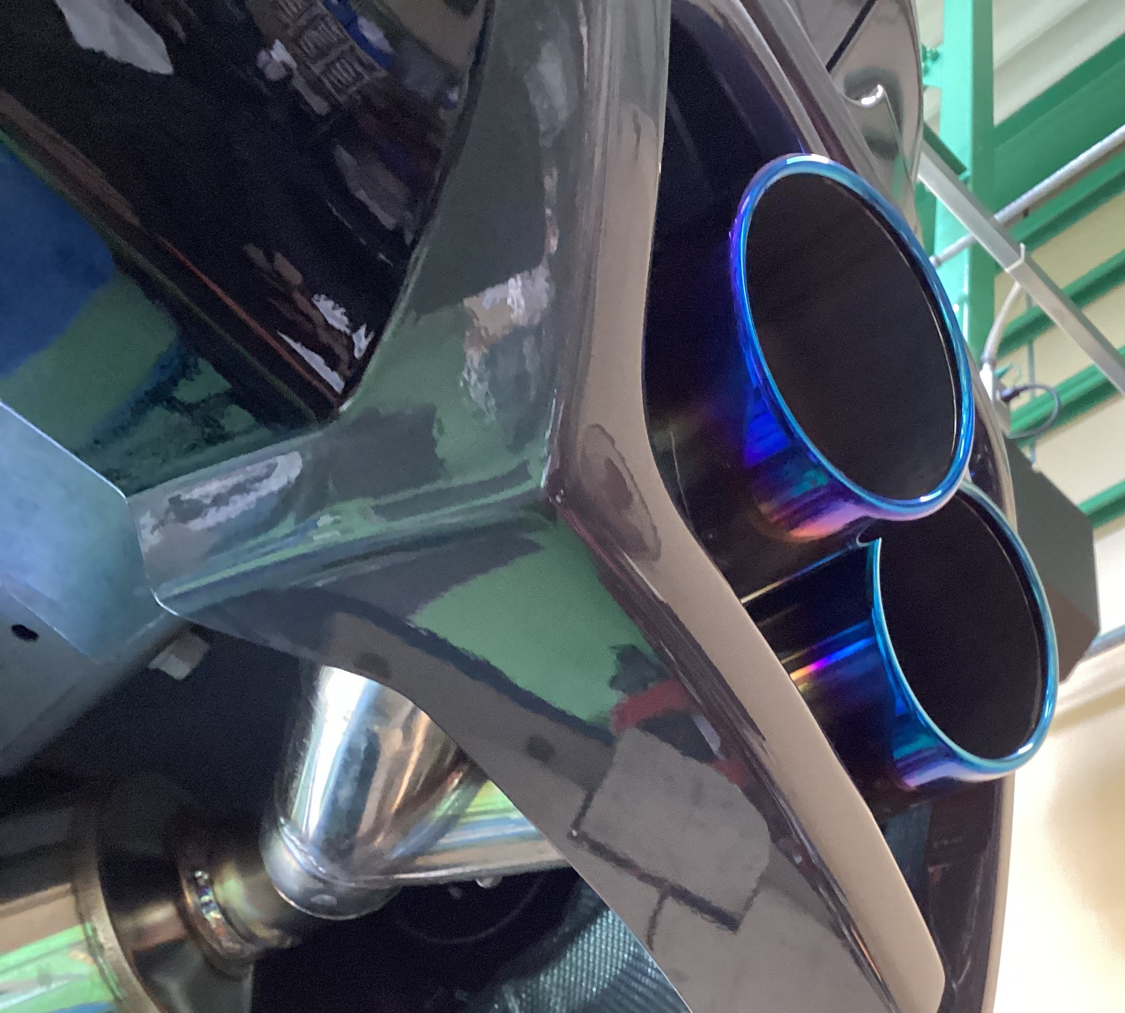 リアスポイラーの開口部にワンオフマフラーの出口が届きません・・・・