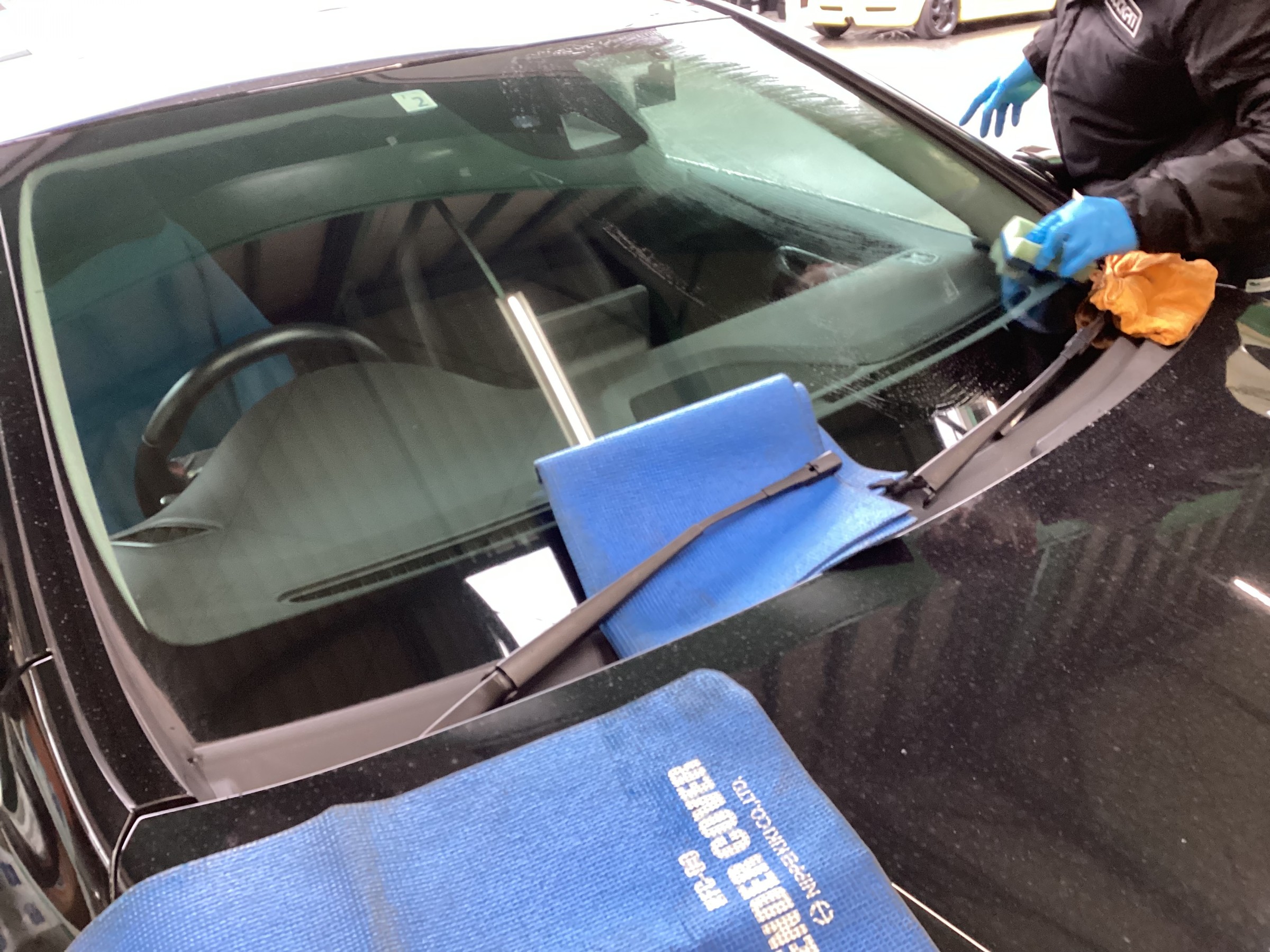 同時にフロントガラス撥水コーティングも施工して・・・