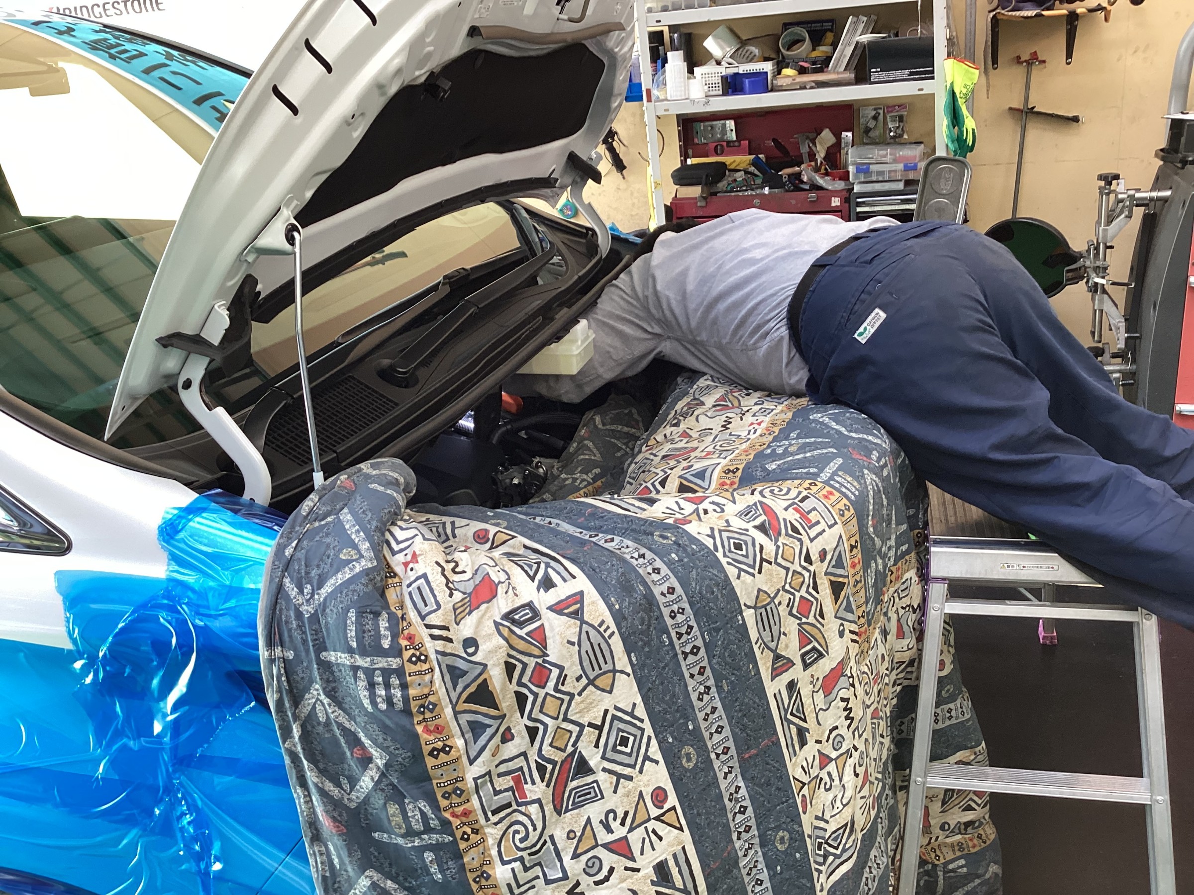 この左右の、フロントアッパーマウントのナットを外す為に・・・