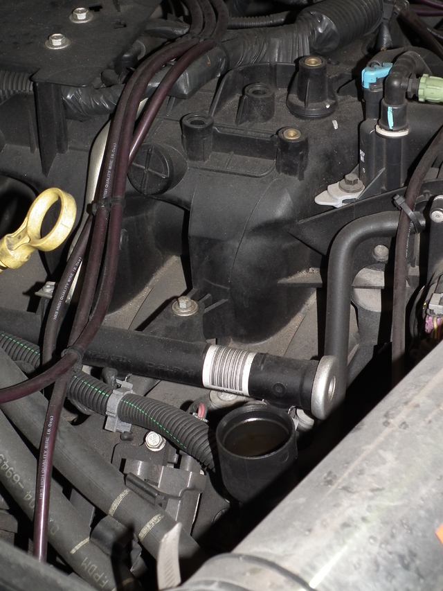 締め付けを行い、エンジン上部についているオイル注入口より