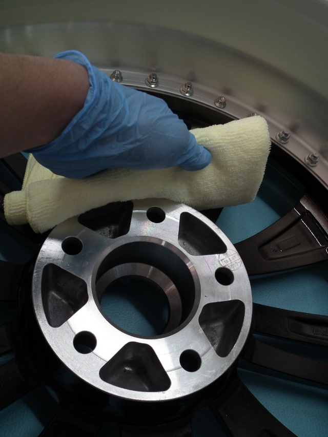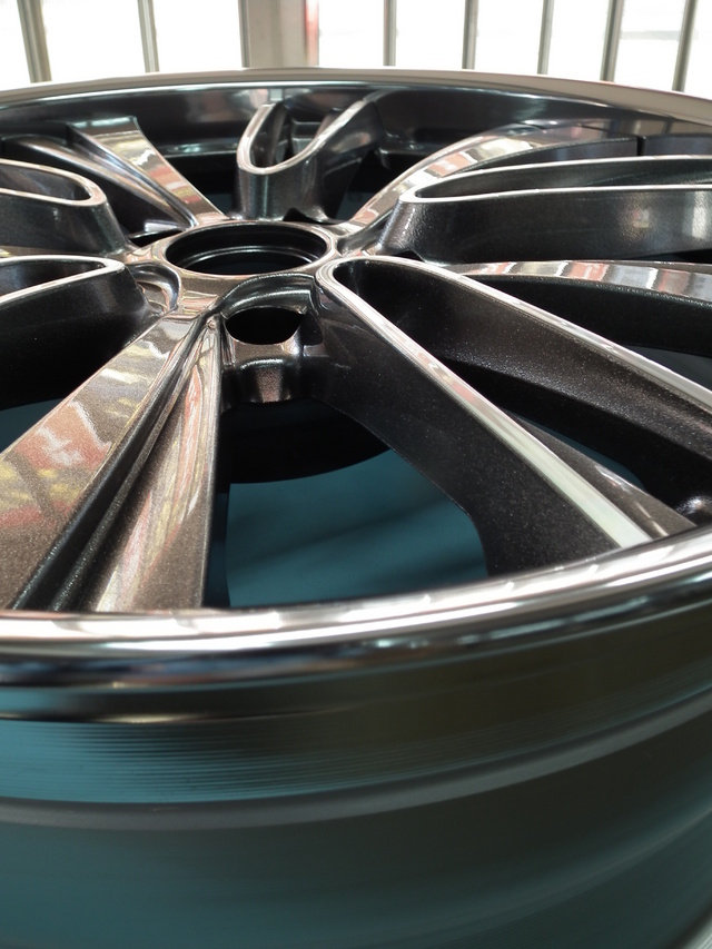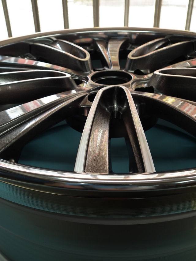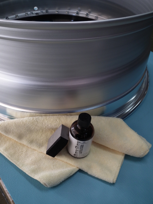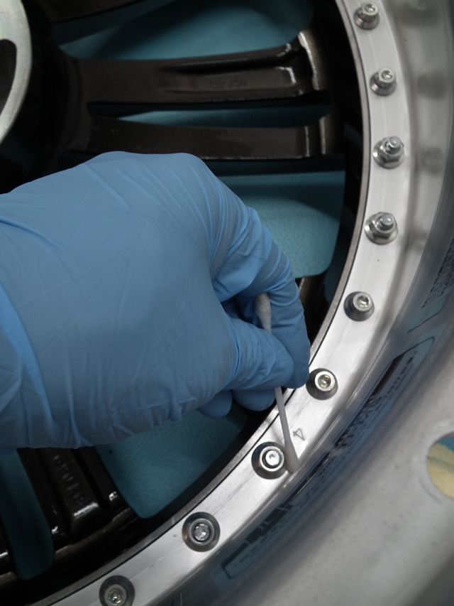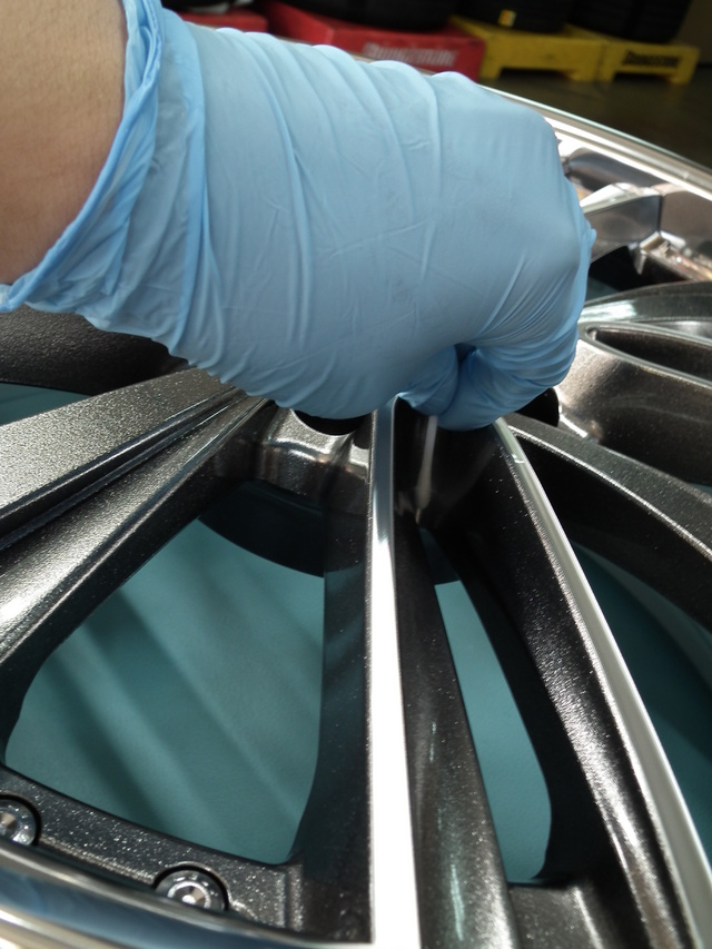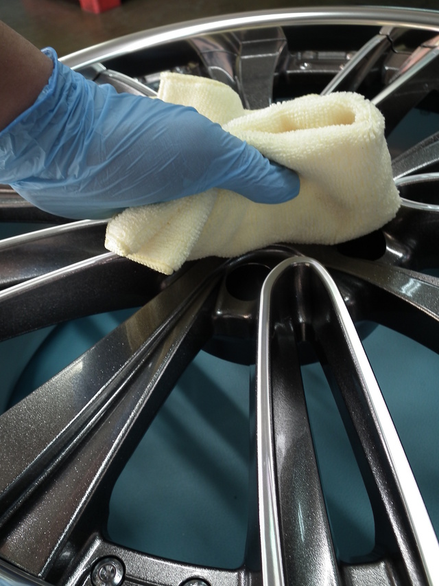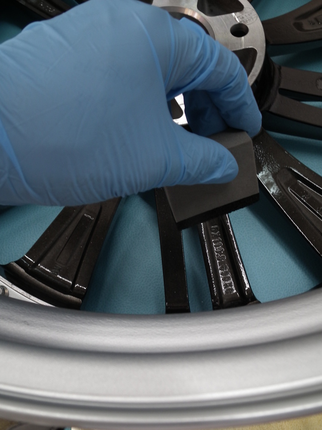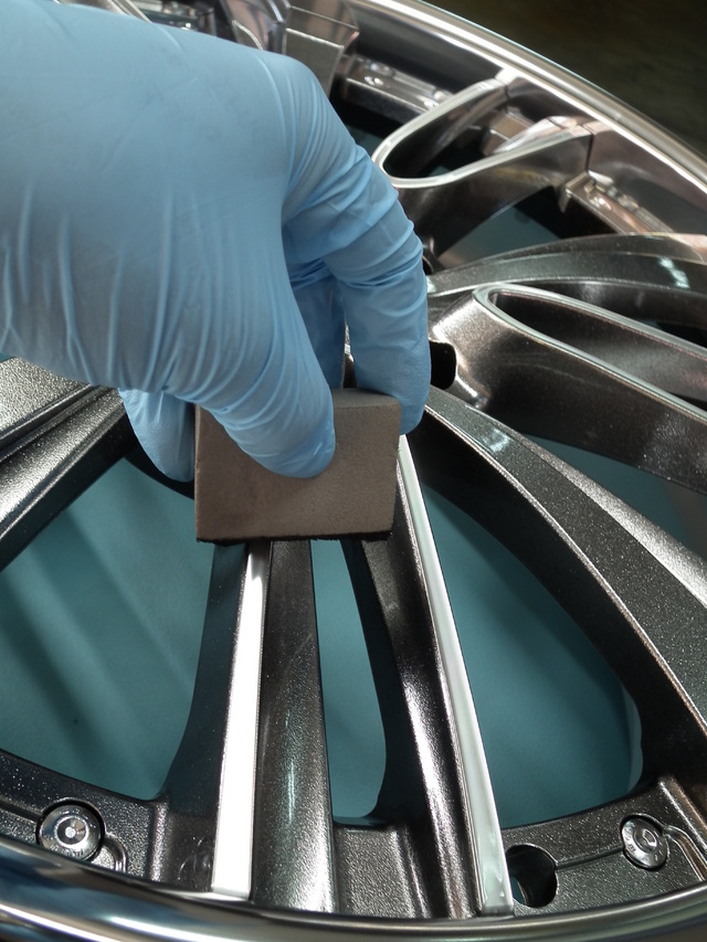 当店のコート剤はスプレータイプでなく、溶剤をホイールに塗りこみます。