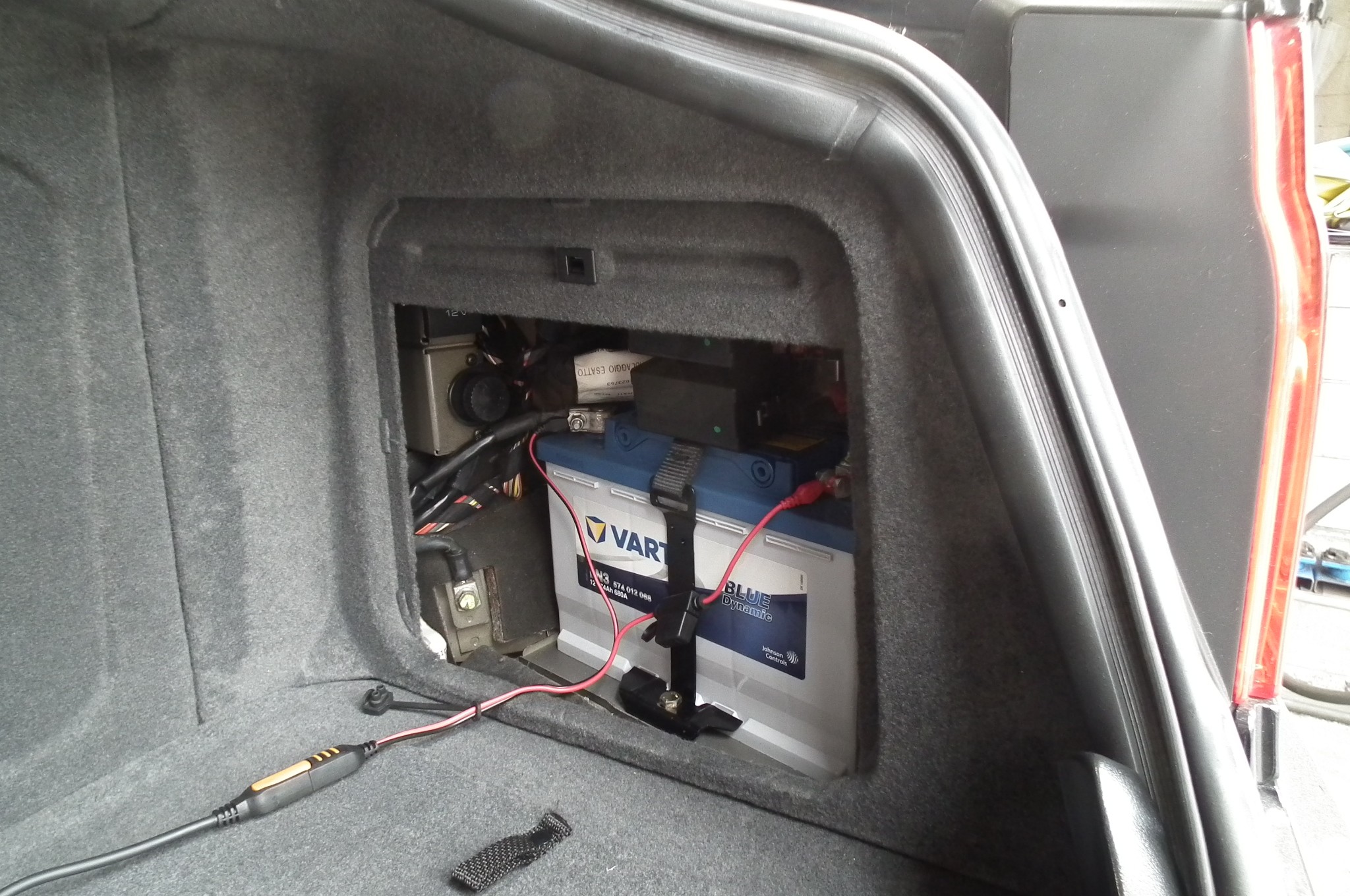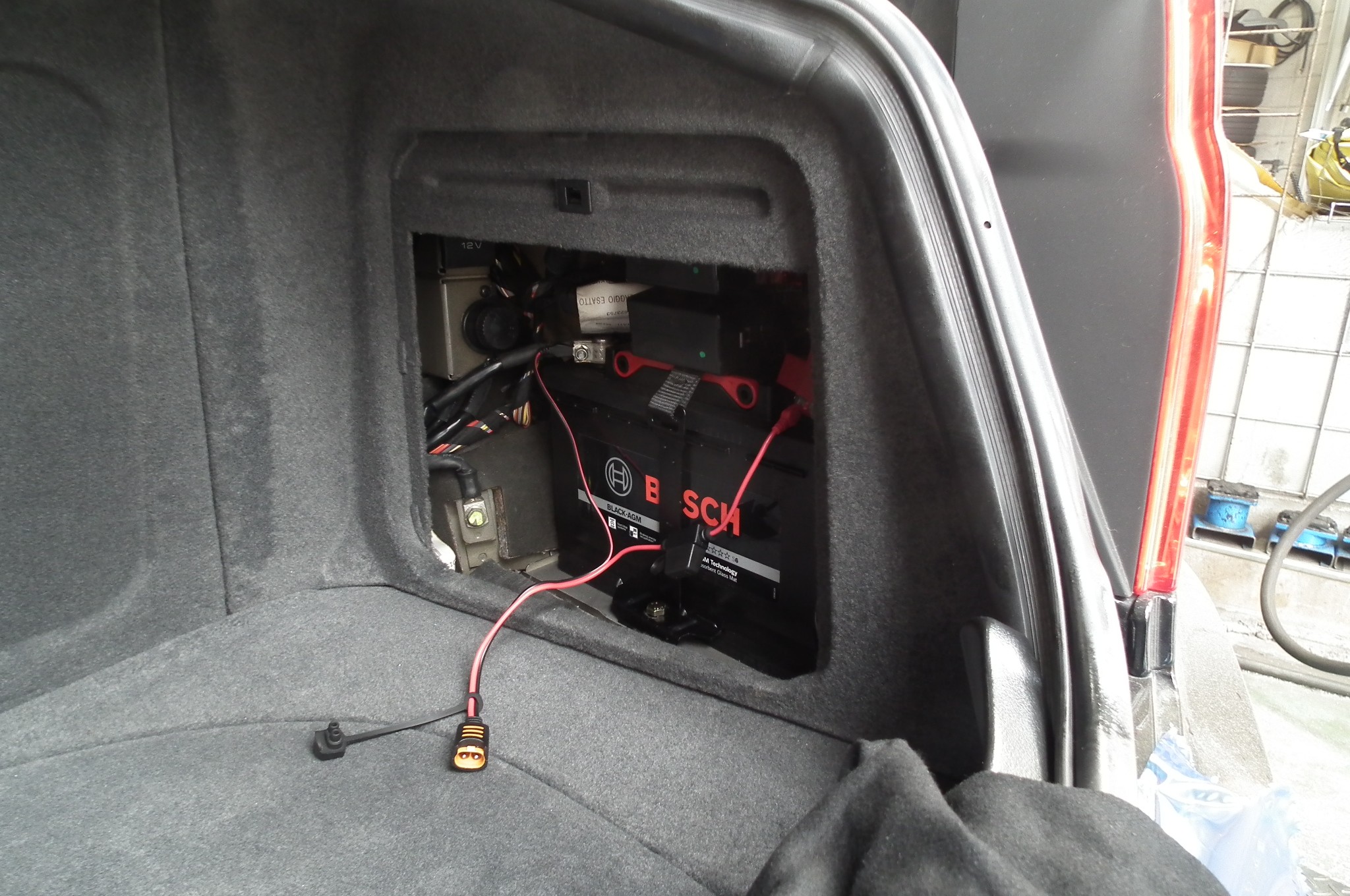 トランク右サイドにバッテリー設置されております。