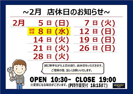【本日は店休日となります】