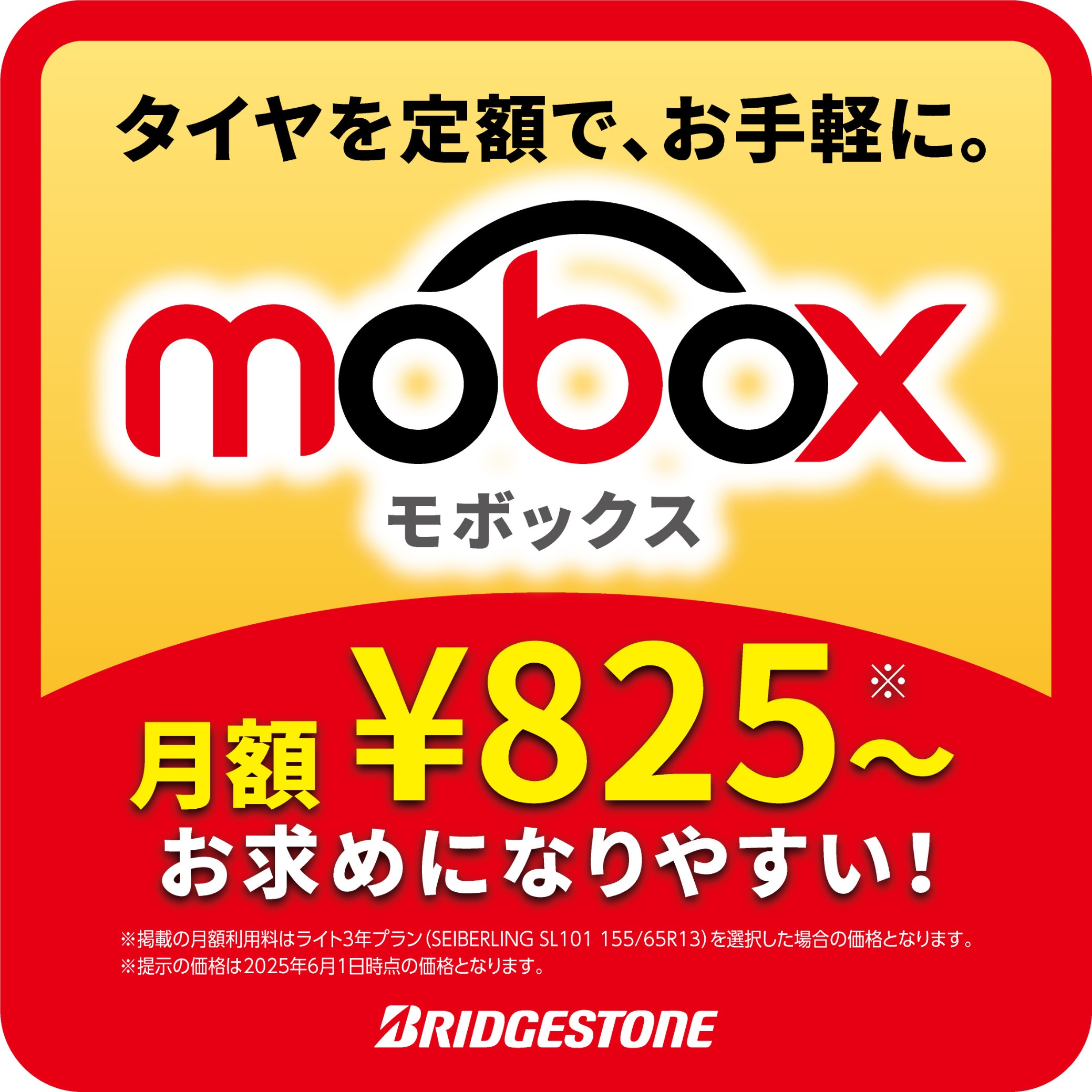 ブリヂストンにはタイヤを月々の定額で購入できるサービス「mobox」があります!