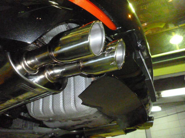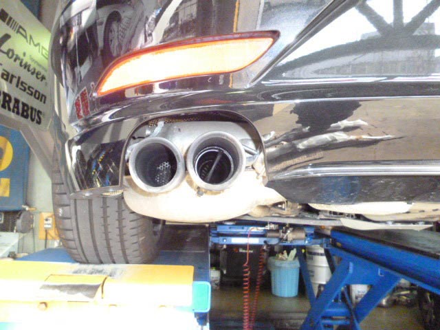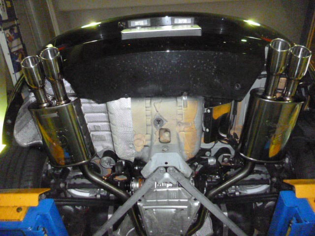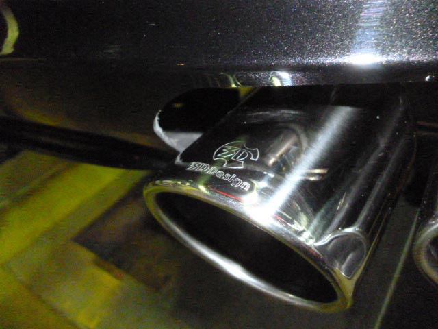 『4本出しがいい!』とのお客様の御要望で、3Dデザイン製4本出しマフラーに交換しました。ノーマルバンパーに出口が対応していなかった為、エアロをカットして取り付けました。