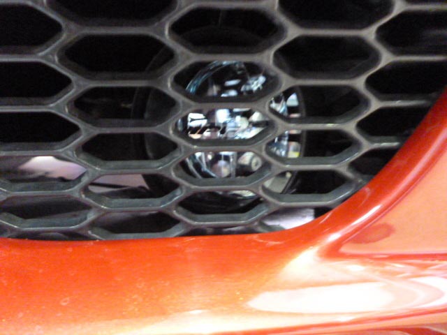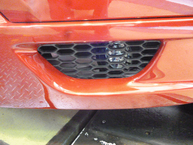 あともう一つ、ハーマンのフロントエアロの一番下のダクトがもう一つさみしい! っというオーナーさんの声で、さりげなく網の向こうにHIDをインストールしてみました。ナイトドライブにはインパクト大ですね!!!