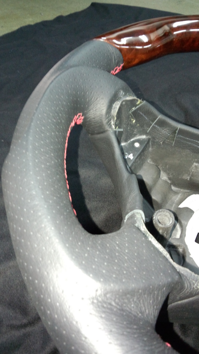 ステアリングは、いろいろ入念な打ち合わせをさせていただき、1ヶ月以上かけて作成しました。仕上がりは120%、お客様も大満足です!