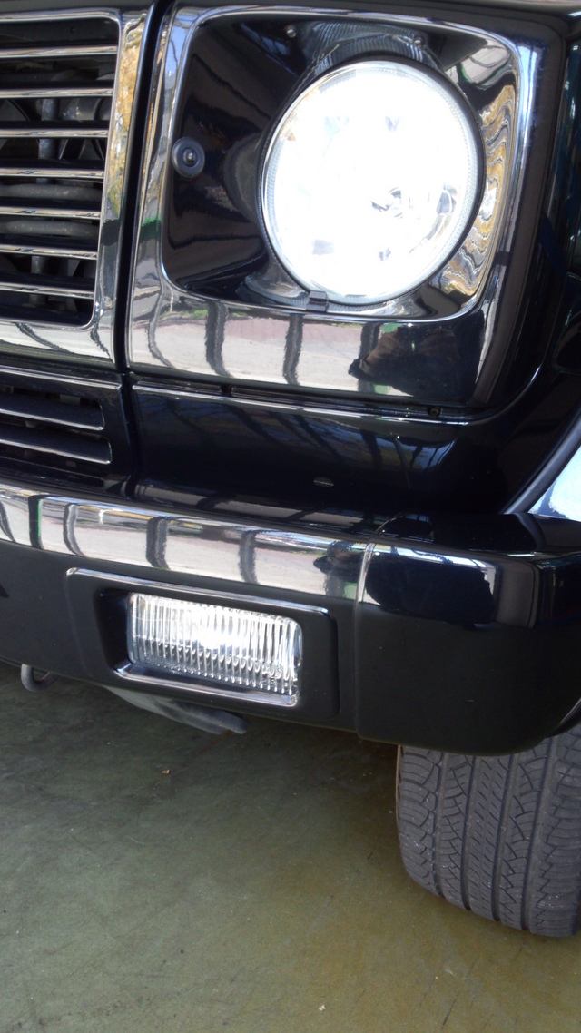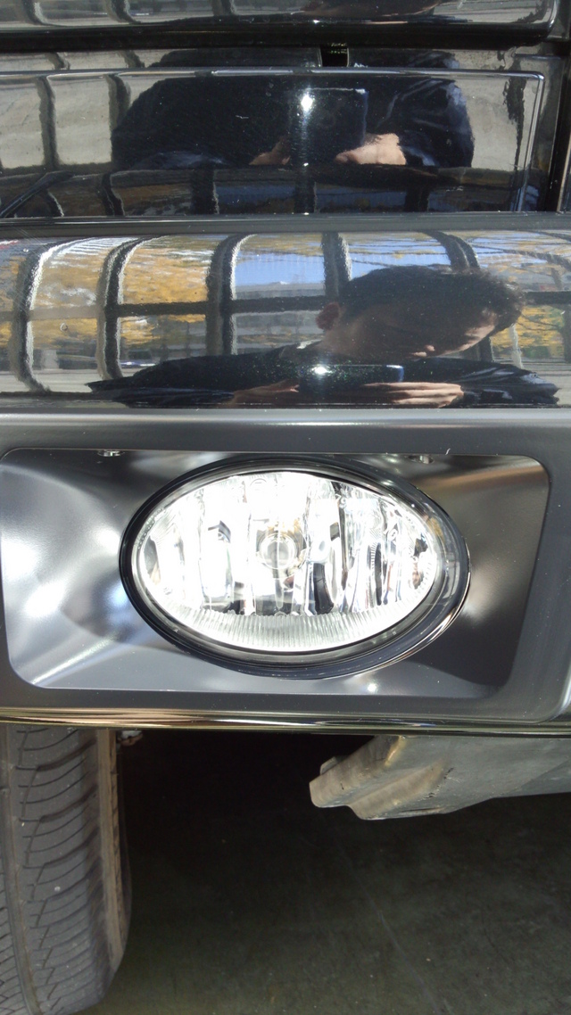 T様のゲレンデは2002年モデル、フォグ形状が四角だったので、2007年以降モデルの楕円形状のフォグにごっそり交換しました。形状が変わるだけで、かなり雰囲気が変わりますね!