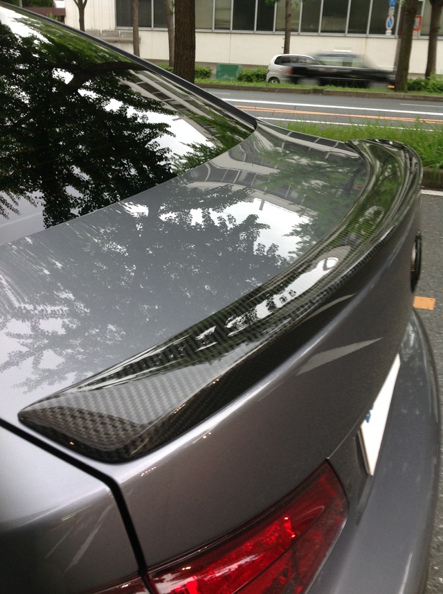 次は、純正の特別仕様車のみについているカーボンリアウィング、純正だけあってクオリティーは抜群です! 今まで以上に走りを意識したスパルタンな車に仕上がりました。