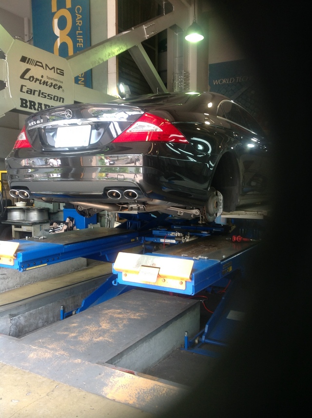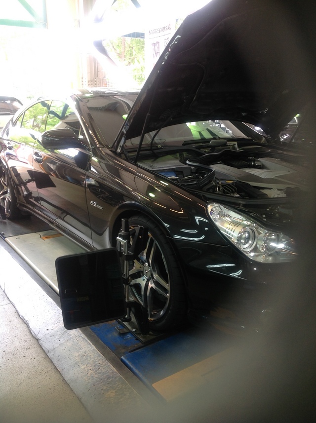 常連様のW219 CLS63 AMG のタイヤ交換 & アライメント調整をさせていただきました。