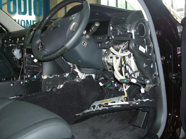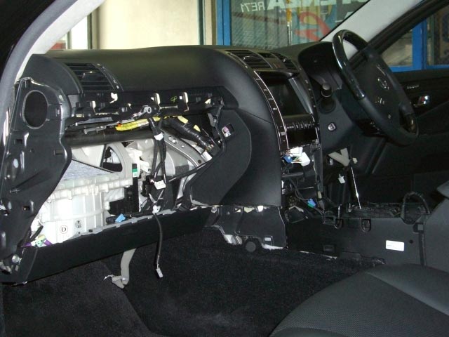 まずは分解写真からですが、グローブボックスにコントローラーを入れたいので、助手席から運転席側のエアサスコントロールユニットまで全部外さないと作業が出来ません。