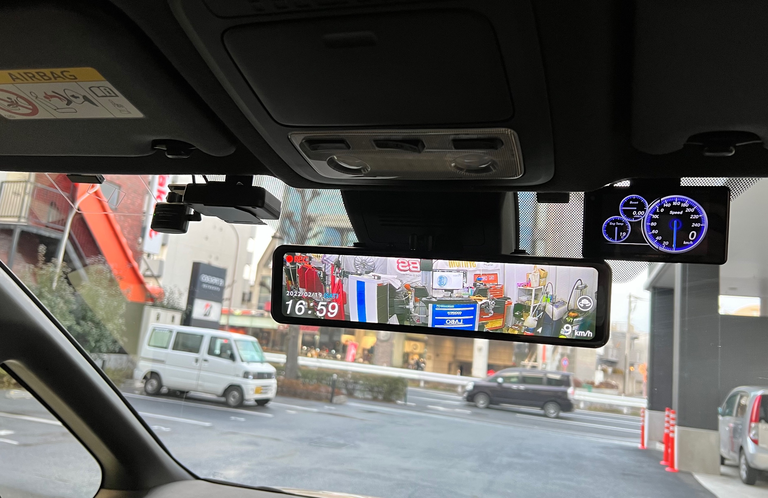 フロントカメラはルームミラー左側。