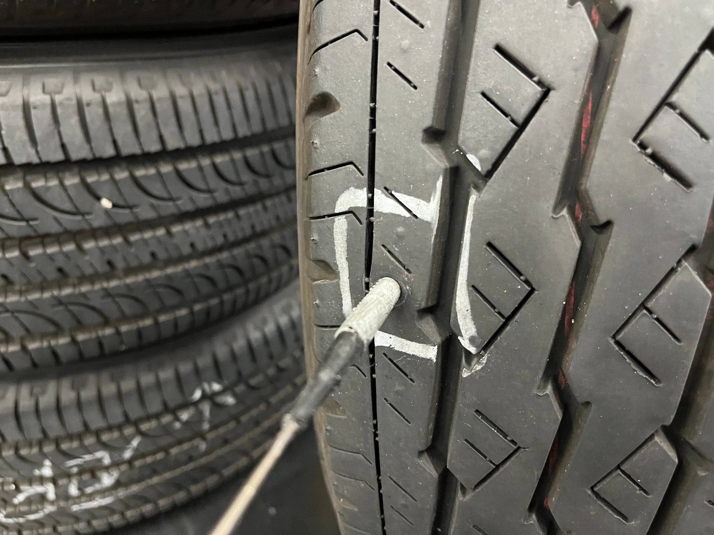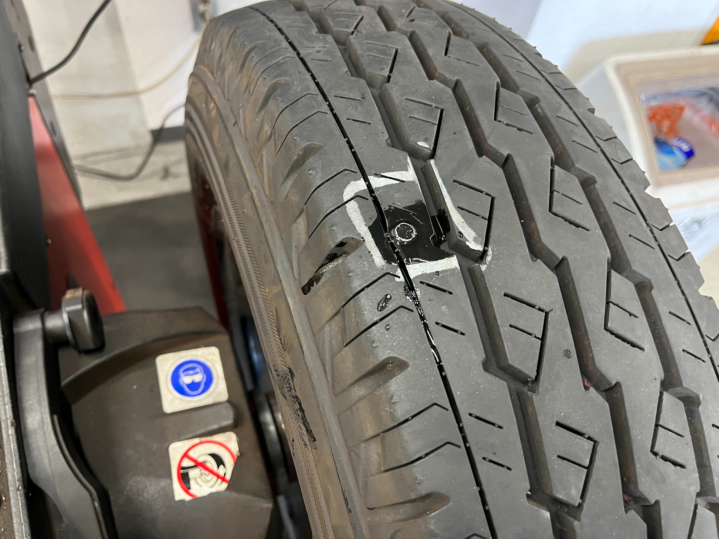 当店は“パンクかも?”の状態は、低空気圧で走行してる可能性があるので、パンク個所とタイヤをホイールから分解し内側の状態も確認します。