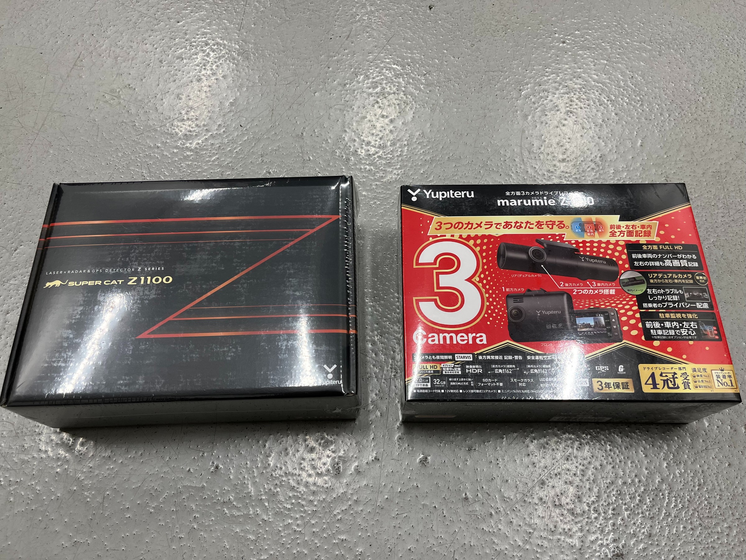 今人気商品になっています【Z1100】と、安全装置普及に伴い360度カメラが取付けにくい昨今、後ろから前へ撮影する【Z-300】が人気で、今回は双方お取付です。