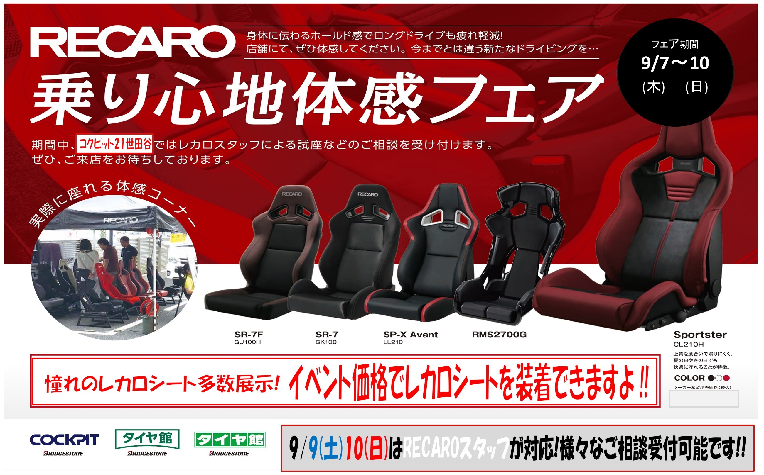 *9/9(土)10(日)…RECAROスタッフが、試し座りやご相談等お客様をサポート致します。