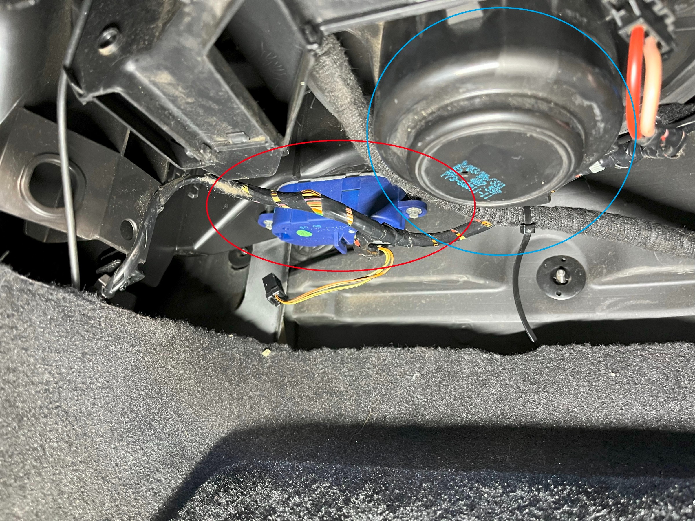 助手席側の足元上側に怪しいであろう